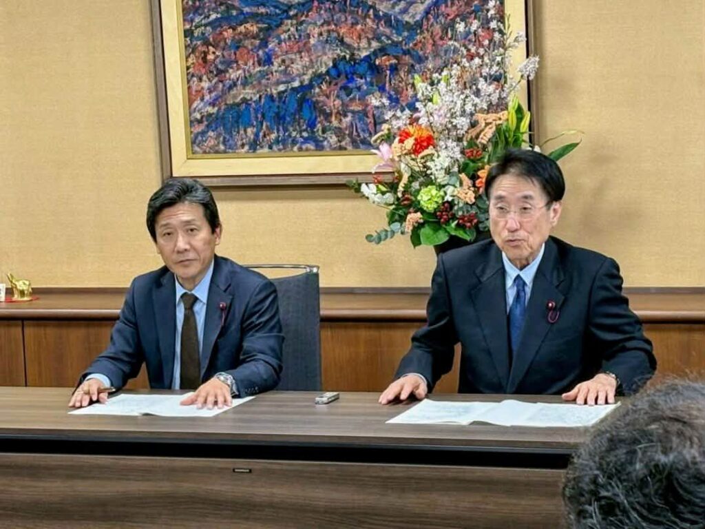 本会議終了後、直ちに高林議長と共に記者会見に臨みました。