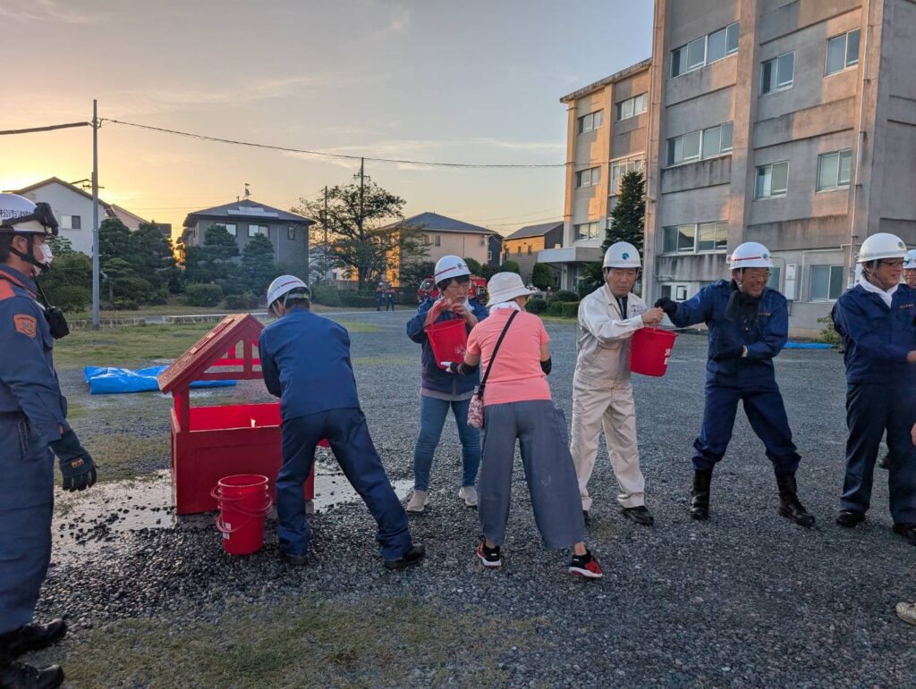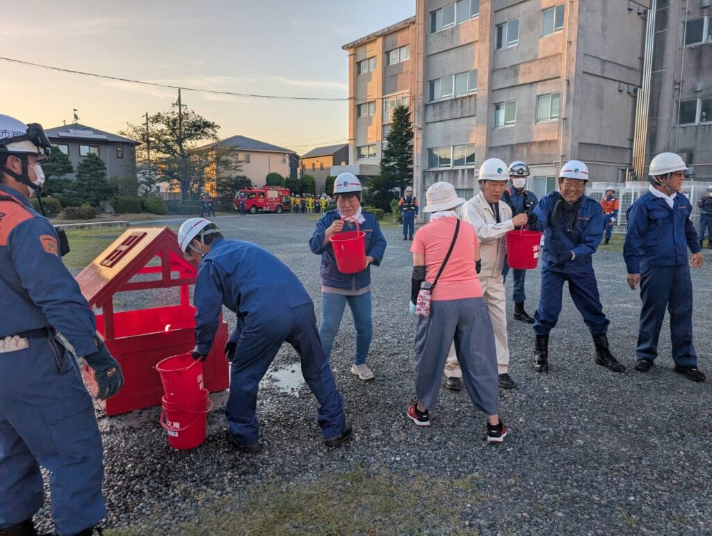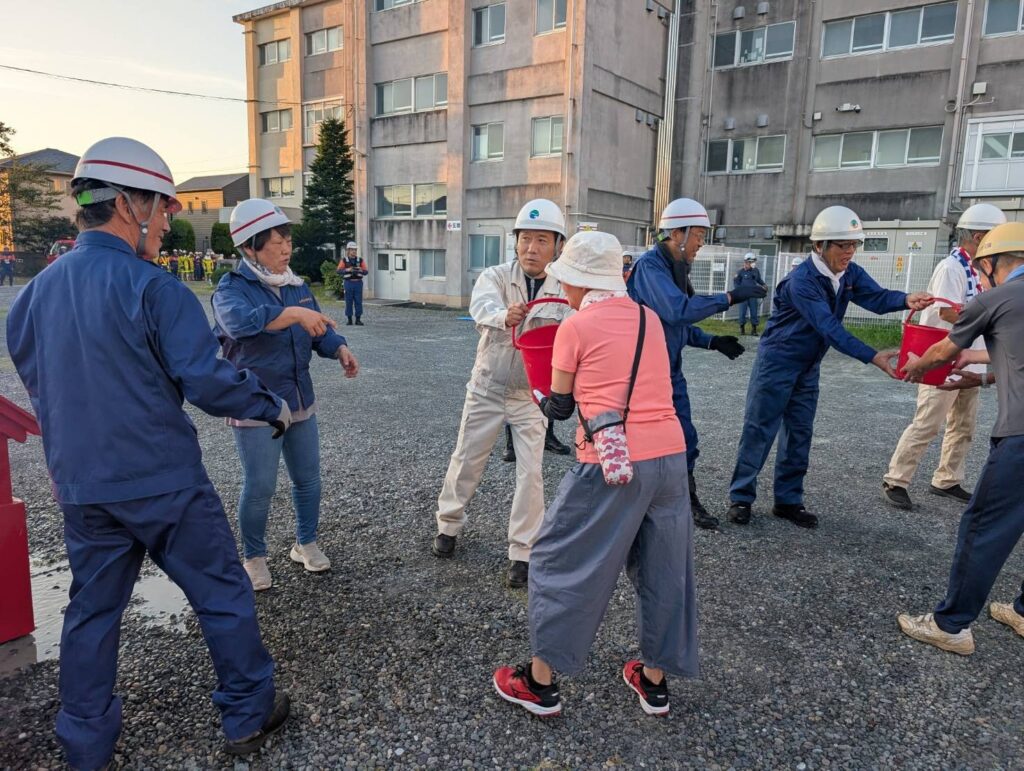 地元の自主防災隊や市民の皆さんも加わり、バケツリレーや放水訓練に真剣に取り組まれました。